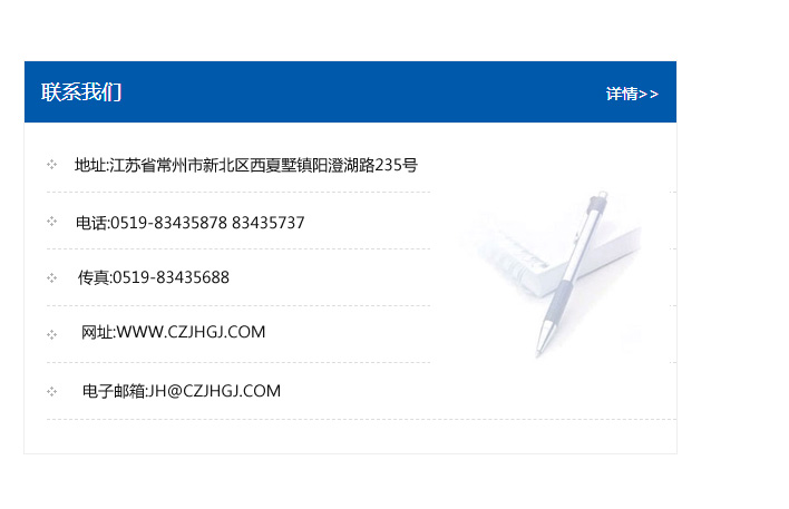 地址:常州市新北區友邦商務大廈1幢16、17層  電話:0519-85101652  傳真:0519-85112595  郵編:213022  網址:www.cz-jiayue_cn.dikinsh.com  郵箱:xiajifengaa@163.com